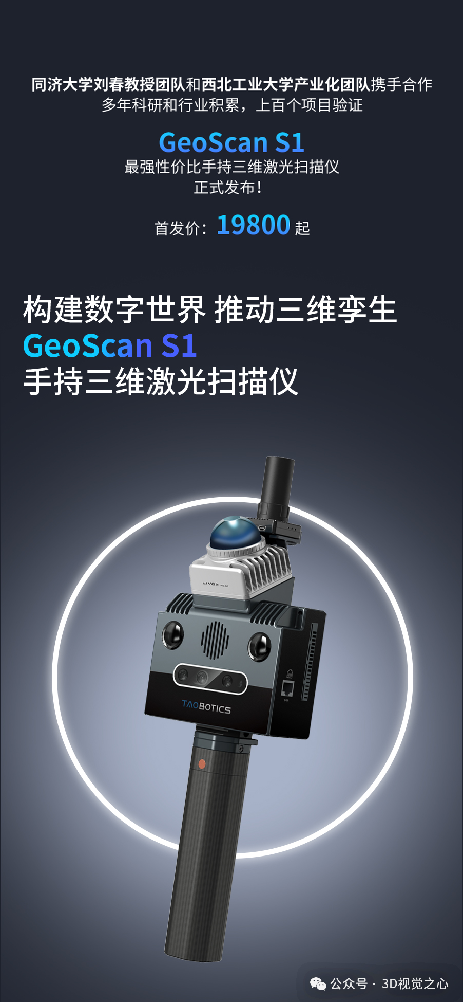 面向工业场景和教研场景的超高性价比3D扫描仪来了!GeoScan S1是国内目前最强性价比实景三维激光扫描仪,轻量化设计,一键启动,便可拥有高效实用的三维解决方案。以多模态传感器融合算法为核心,实现厘米级精度的三维场景实时重构。可广泛用于多种作业领域。