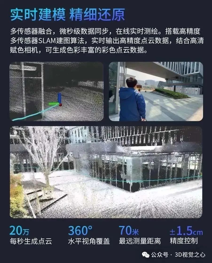 高效率高精度建图:模型精度高,行走之间轻松扫 描大场景
