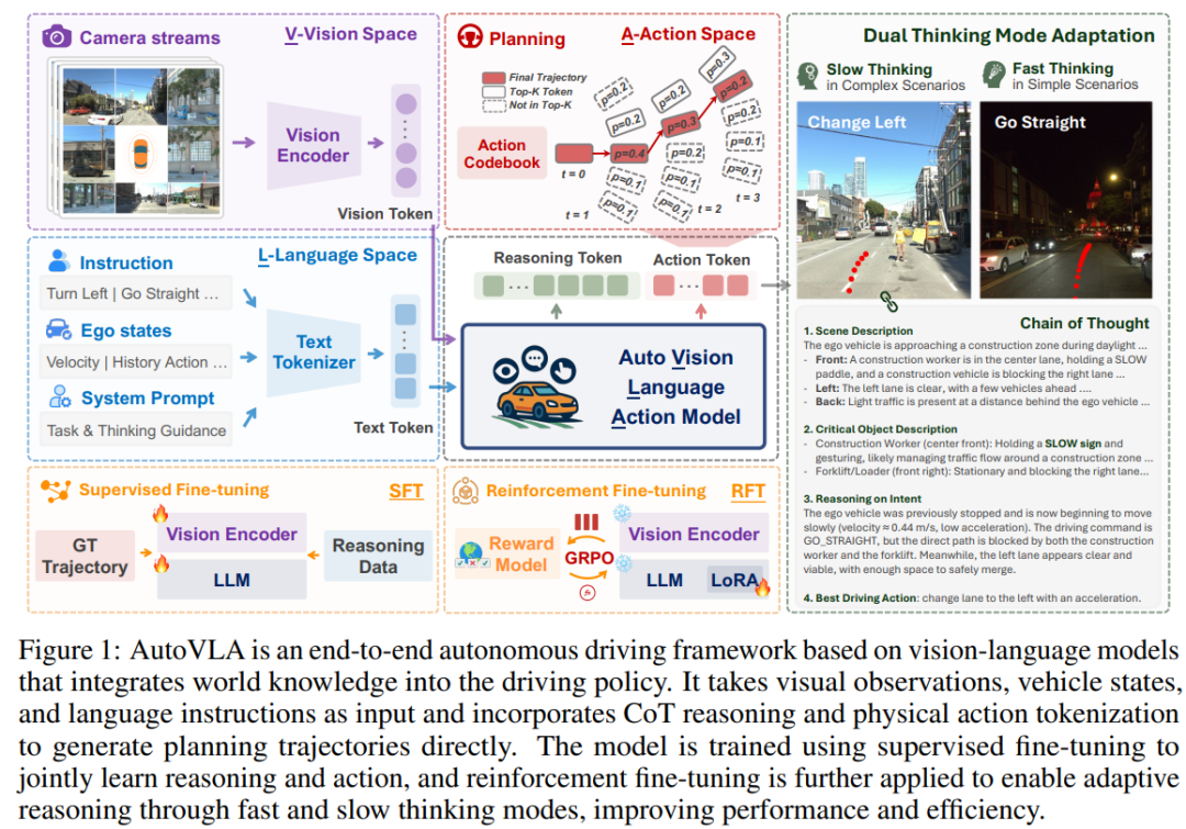 论文标题:AutoVLA:A Vision-Language-Action Model for End-to-End Autonomous Driving with Adaptive Reasoning and Reinforcement Fine-Tuning
