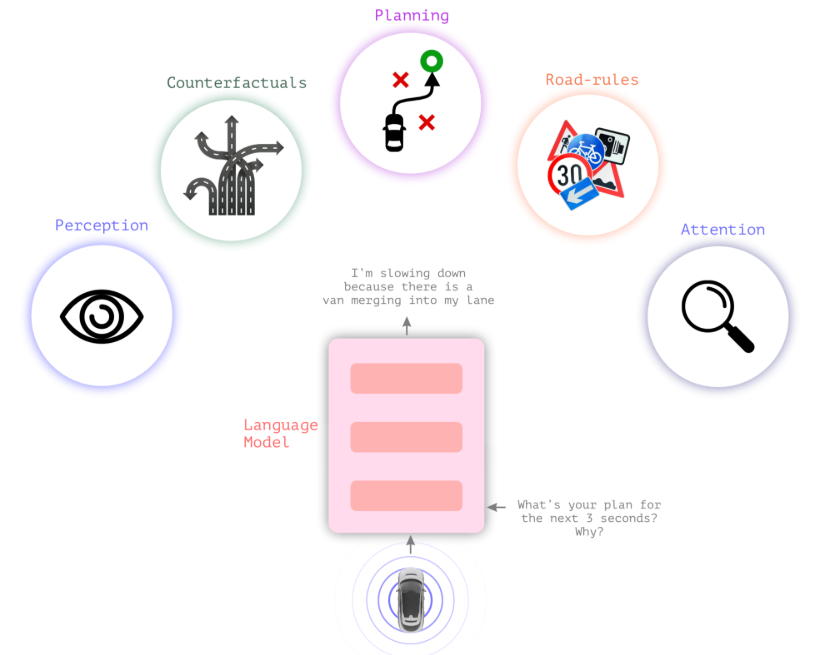 驾驶知识推理:通过在大规模语言模型中嵌入的常识和推理能力,LINGO-1 能够理解复杂的交通规则、社交礼仪,并处理罕见的长尾场景,这是传统 if else 方法难以实现的。