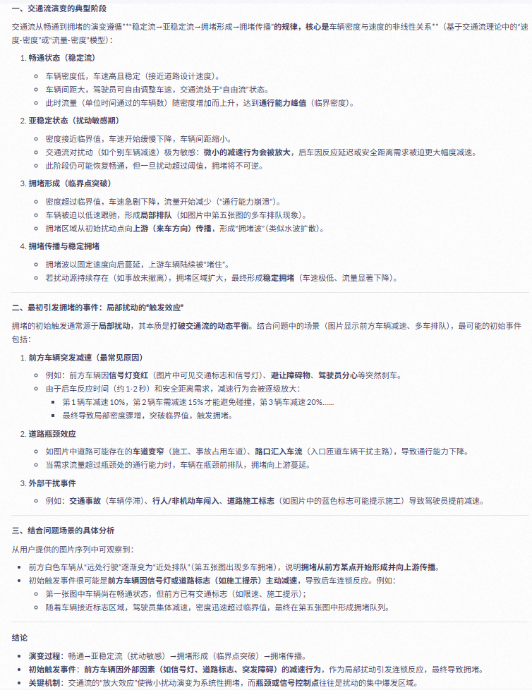 👨🎓:请解释交通流从畅通到拥堵的演变过程。最初是什么事件引发了拥堵?
