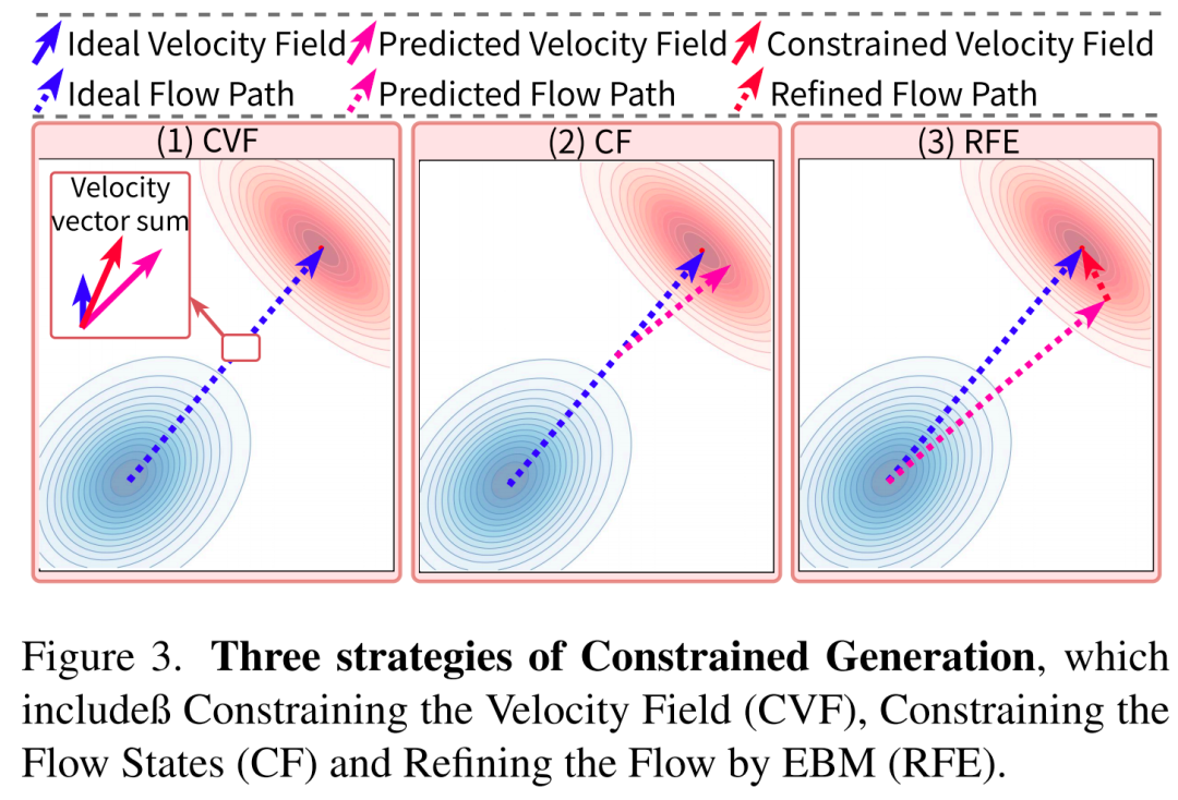 遵循EBM训练范式,定义训练目标( 表示模型在 时生成的终点, 为目标真实轨迹):该目标函数 的核心作用是提升违反约束样本的能量,同时降低满足约束样本的能量,从而引导速度场向约束满足概率更高的区域优化。