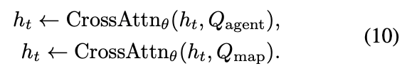感知到场景令牌的映射:给定多视角图像,先提取图像特征 ,并将其提升为鸟瞰图(BEV)表示 。感知模块通过查询该BEV特征,生成两组结构化令牌:(1) 智能体令牌 (编码动态智能体间的交互关系);(2) 地图令牌 (嵌入道路与车道拓扑结构)。