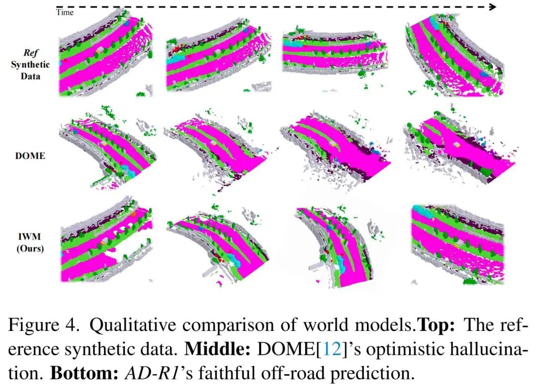 AD-R1发现了一个很大的问题:强化学习所利用的世界模型中存在根深蒂固的“乐观偏差”。这类模型仅基于安全的专家数据训练,无法预测错误行为的后果。当以不安全轨迹为输入时,它们会幻想出不切实际的安全未来——障碍物消失、道路被忽视——而非预测即将发生的故障。这种“无法想象失败”的特性使其难以成为学习稳健驾驶策略的可靠评估器。