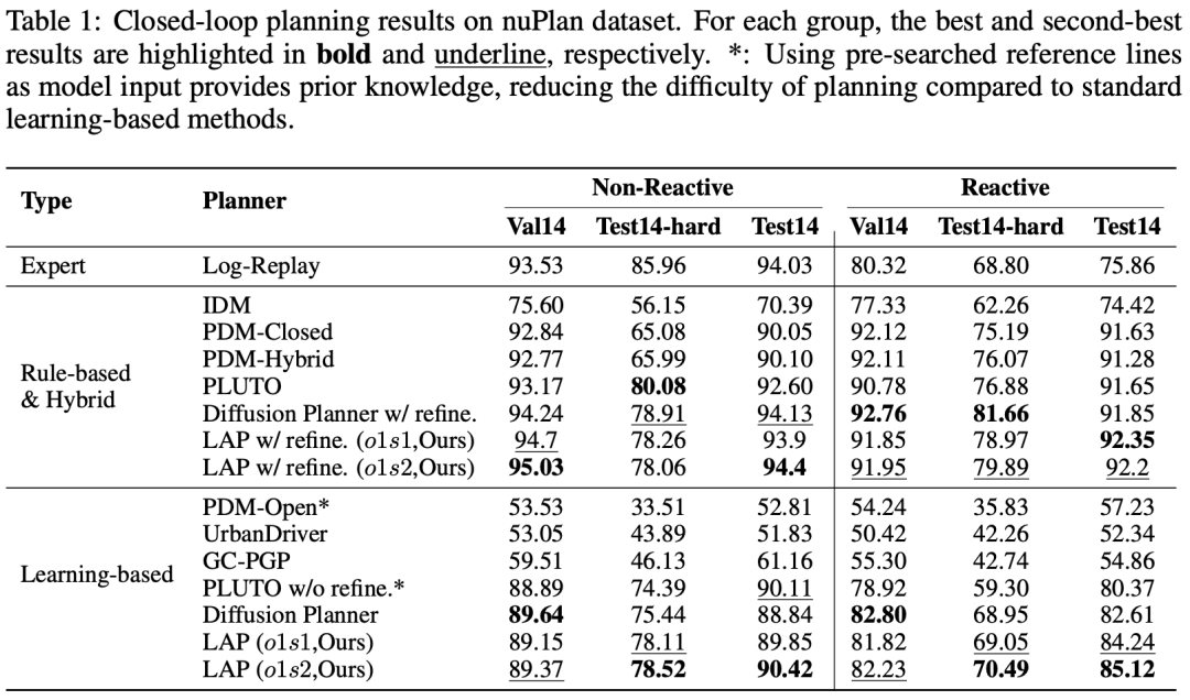 LAP 在 nuPlan 基准上取得了优异的成绩。