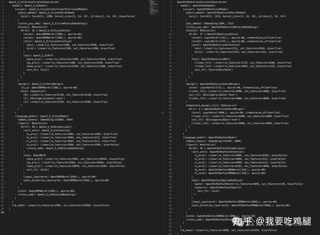 通过对比 Qwen2.5-VL 和 Qwen3-VL 的模型定义代码,我们可以直观地看到这场深刻的进化: