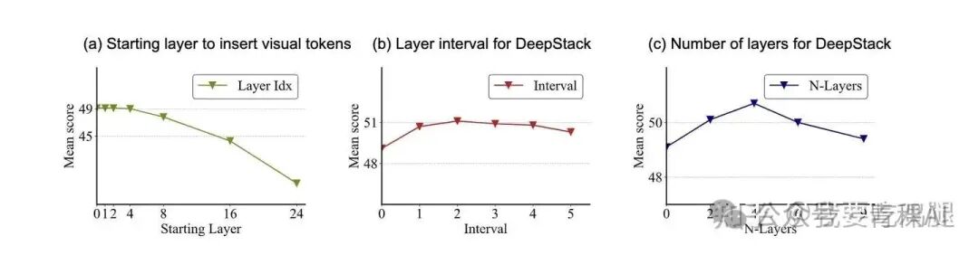 这些结论为 DeepStack 的高效实现提供了清晰的“配方”,也解释了为什么 Qwen3-VL 会选择将视觉特征注入到 LLM 的前几个层中。