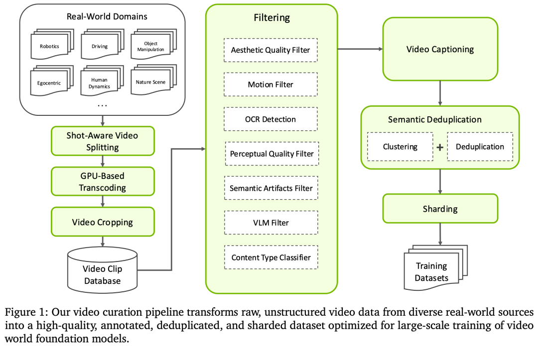 构建了大规模视频数据管理流程,涵盖视频分割、过滤、标注、去重与分片,从 2000 万小时原始视频中提取出高质量、多样化的训练数据集。