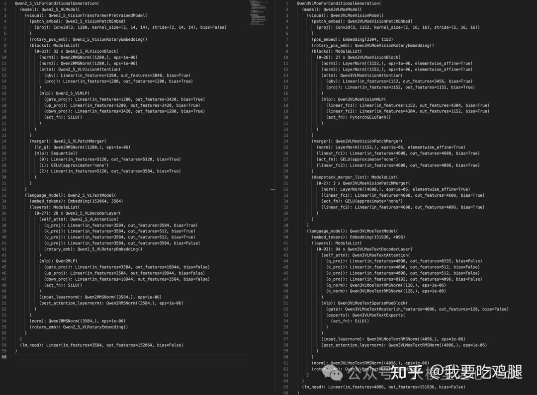 通过对比 Qwen2.5-VL 和 Qwen3-VL 的模型定义代码,我们可以直观地看到这场深刻的进化: