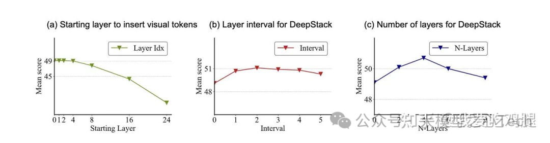这些结论为 DeepStack 的高效实现提供了清晰的“配方”,也解释了为什么 Qwen3-VL 会选择将视觉特征注入到 LLM 的前几个层中。