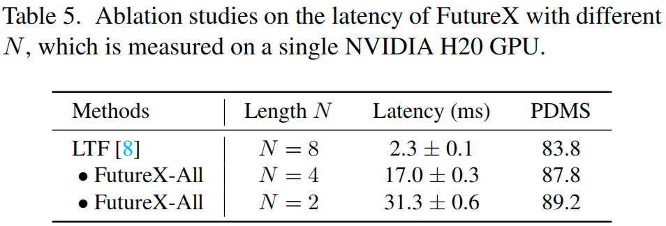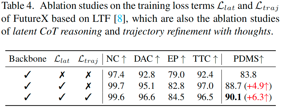 该损失使FutureX能够通过额外的潜在推理处理复杂规划任务,同时在相对简单的场景中保持快速响应。