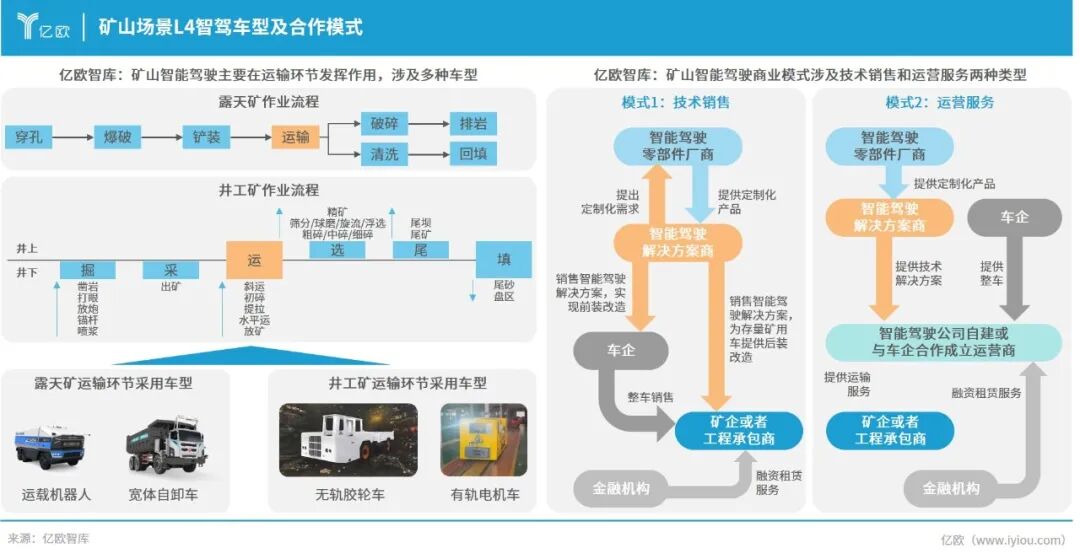 矿山场景中L4车辆主要用于矿石与人员运输,合作模式包括向矿企提供解决方案或按运输量收费。
