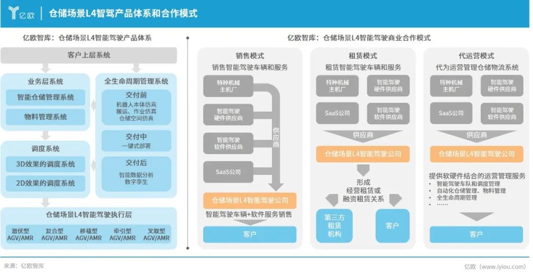 仓储场景以“硬件+软件”结合服务为主,提供AGV/AMR设备及调度管理系统。