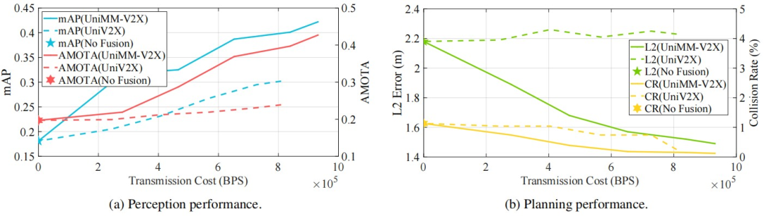 在不同带宽条件下,UniMM-V2X 均表现良好,能够有效利用可用通信带宽进行协同规划,确保了在真实世界自动驾驶场景下的可靠性和可扩展性。