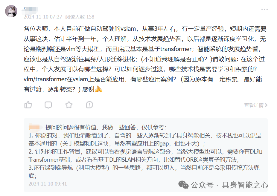 对于很多在业内卷不上去的同学,柱哥其实是建议看看具身的,这里也推荐我们一直维护的具身智能之心知识星球。一年的搭建,社区内已经完成了技术路线分享、直播、问答、求职、赛事等多个版块的分享。这里实现了产业、学术、求职、问答交流等多个领域的闭环。社区致力于为行业培养更多优秀的人才,提供更多展示自己的机会。新人加入优惠已经开启,欢迎新同学扫码加入!