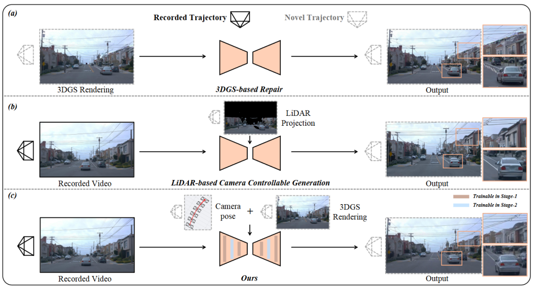 于是他们干脆放弃 LiDAR,把 新轨迹的 3DGS 渲染结果,作为相机控制和结构引导信号。
