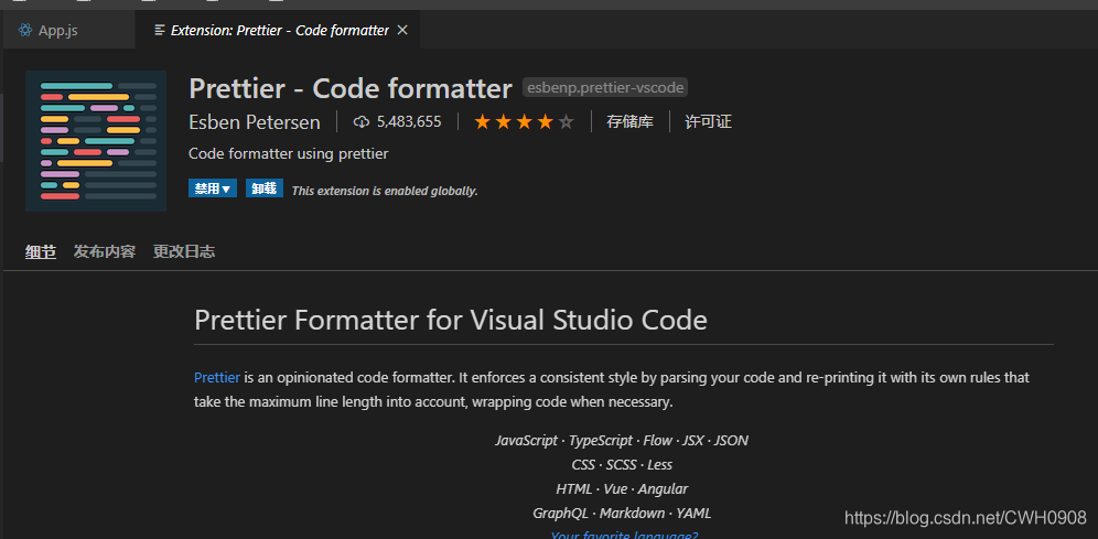 安装 Prettier - Code formatter 插件用于格式化React的jsx代码