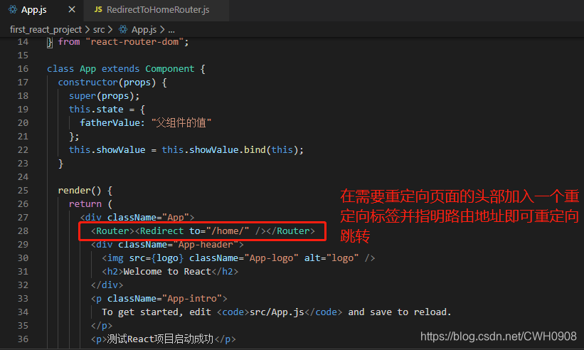 路由重定向需要从react-router-dom额外引入 <Redirect >标签