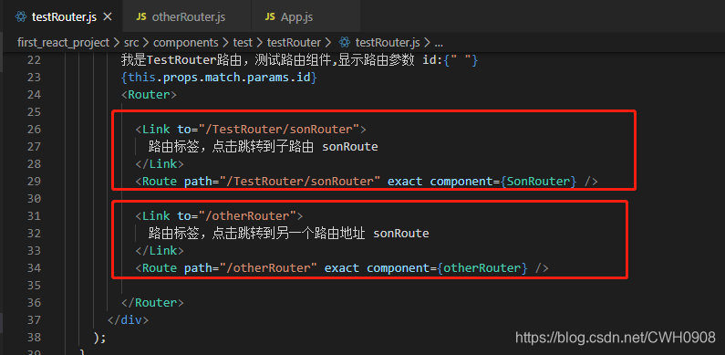 与Vue对比,Vue的<router-link> 在React里面变成了 <Link> , Vue的 <router-view> 在React里面变成了<Route>,且React的路由标签需要包裹在<Router>标签里面。