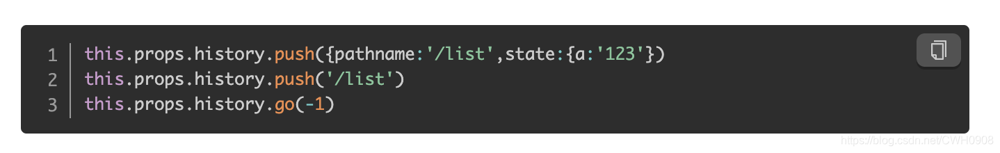 <Route path='/sort ' component={Sort}/> <Link to={ { path : ' /sort ' , state : { name : 'sunny' } } }> this.props.history.push({pathname:"/sort ",state : { name : 'sunny' }}); 获取参数用: this.props.location.state.name