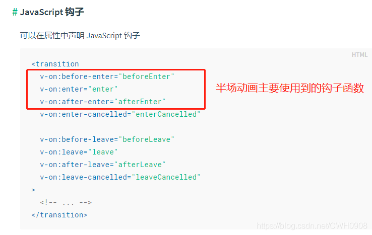<transition @before-enter="beforeEnter" @enter="Enter" @after-enter="afterEnter">