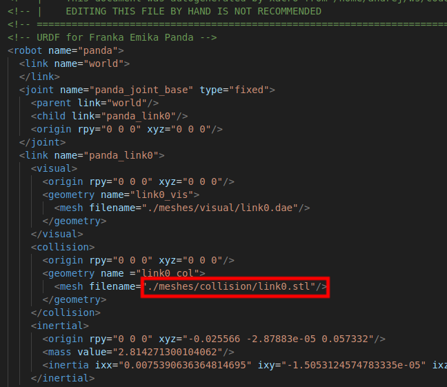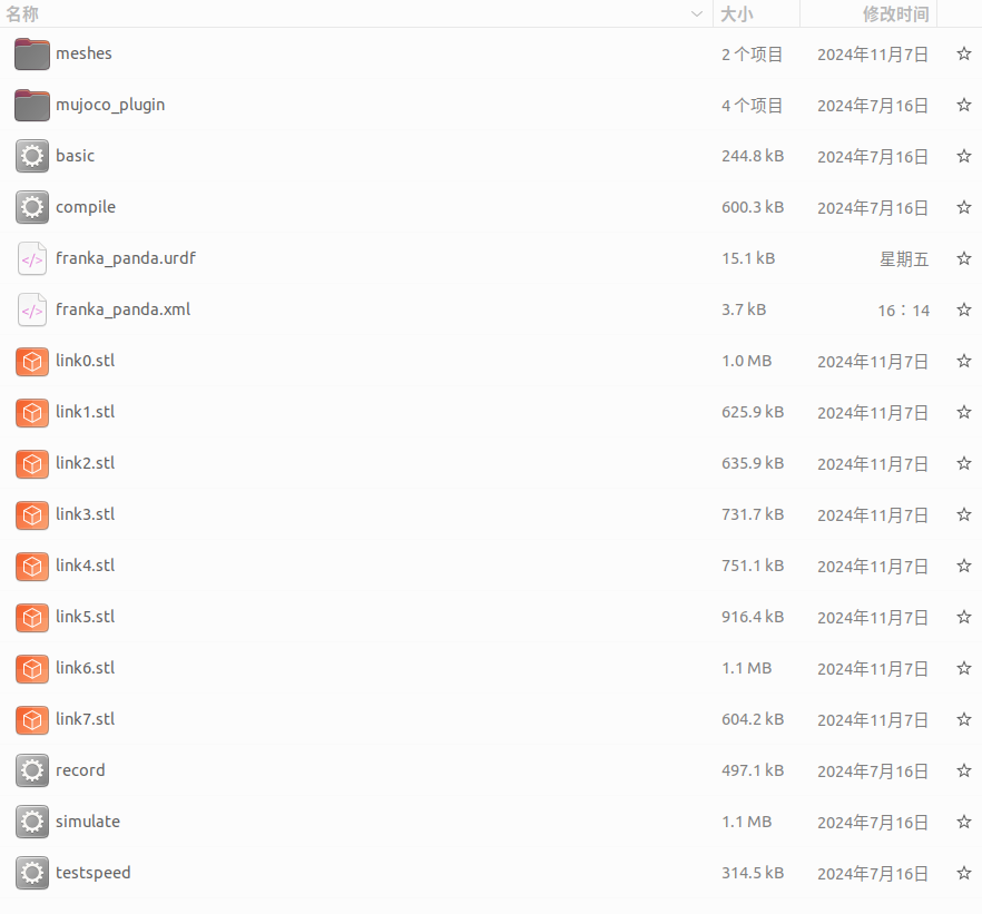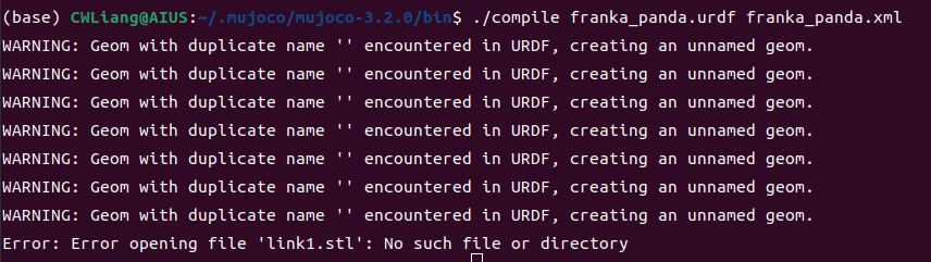 其中franka_panda.urdf是要转换的文件名,franka_panda.xml转换成的xml文件名