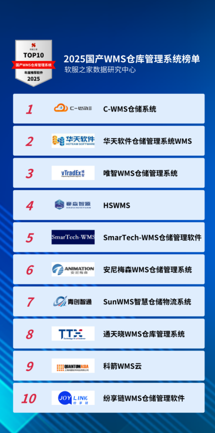 面对现代供应链的挑战,专业的仓库管理系统(WMS)能够赋能企业仓储管理,助力实现运营效率的提升、综合成本的优化与客户服务体验的升级。在软服之家2025年5月发布的《2025国产WMS仓库管理系统榜单》中,C-WMS凭借其技术能力和行业经验,在国产WMS解决方案领域表现突出。完整榜单见软服之家官方发布: