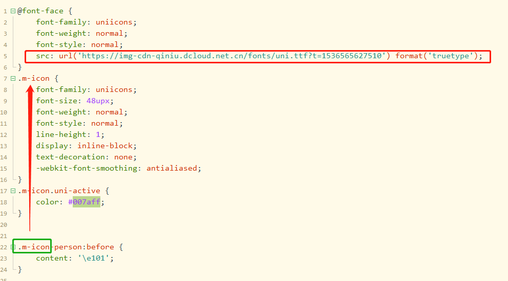 @font-face { font-family: uniicons; font-weight: normal; font-style: normal; /* 暂时先用官网的url */ src:url('https://at.alicdn.com/t/font_1328537_gk9yl0aa13q.ttf') format('truetype'); } .icon { font-family: uniicons; font-size: 48upx; font-weight: normal; font-style: normal; line-height: 1; display: inline-block; text-decoration: none; -webkit-font-smoothing: antialiased; } .icon.uni-active { color: #007aff; }