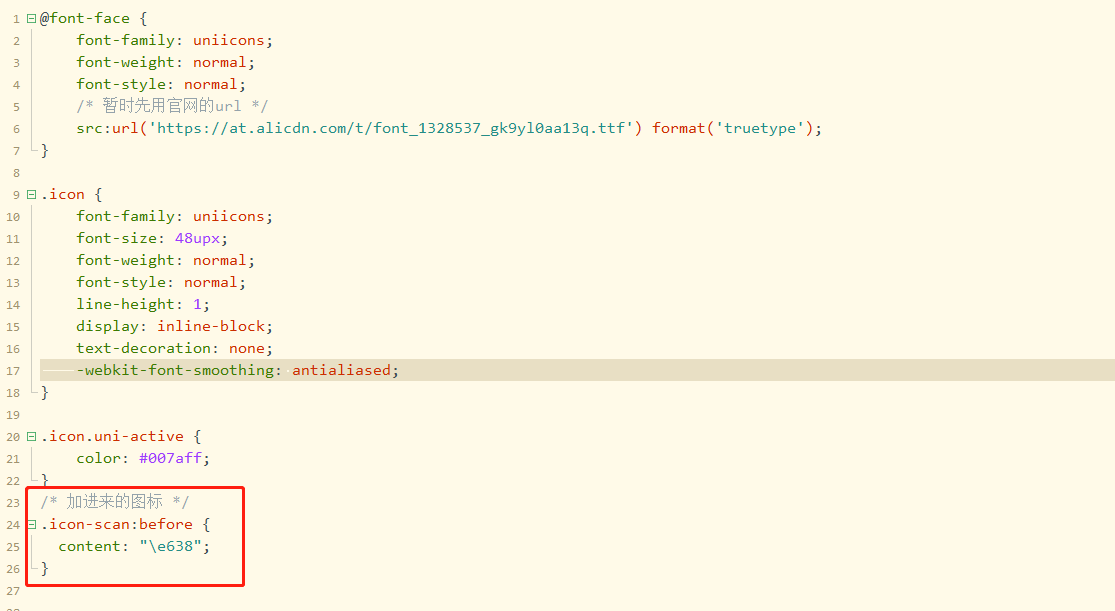 在uni-icon.css 中加入