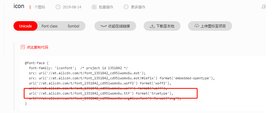 然后点击更新 Unicode ,将更新后的.ttf的那个url 更新到uni-icon.css 中