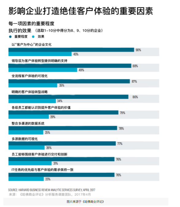 另一方面,《哈佛商业评论》发布的一项调查报告结果表明:73%的领导者认为,客户体验是未来竞争的关键,并且制定了以客户体验为导向的经营战略。然而,只有15%的企业领导者认为自己的客户体验战略和方法是行之有效的。而之所以产生这道鸿沟,跟企业缺少整合多渠道的数据系统、全流程客户体验的可视化系统和多源数据的可视化系统有不可分割的关系。