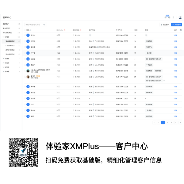 体验管理的核心是真正地了解自己的客户。正所谓,一千个客户有一千张脸,哪怕在同一个客户群当中,每个客户对体验的需求和期待也会有所不同。「体验家XMPlus」的“客户中心”模块可以查看每位客户所处的体验场景以及核心的体验指数;支持机器学习和建模分析,企业通过预测客户流失风险,可提前行动,提升客户忠诚度与粘性。查看客户过往体验历程,遭遇客户投诉时迅速排查原因,精准定位问题,有效解决客户不满,降低流失率。