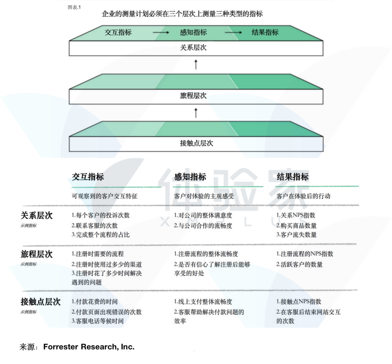 为了找到这些问题的答案,企业需要从从关系(Relationship)、旅程(Journey)和触点(Touchpoint)三个层面出发,测量感知(Perception)、交互(Interaction)和结果(Outcome)这三个指标(参见图1):