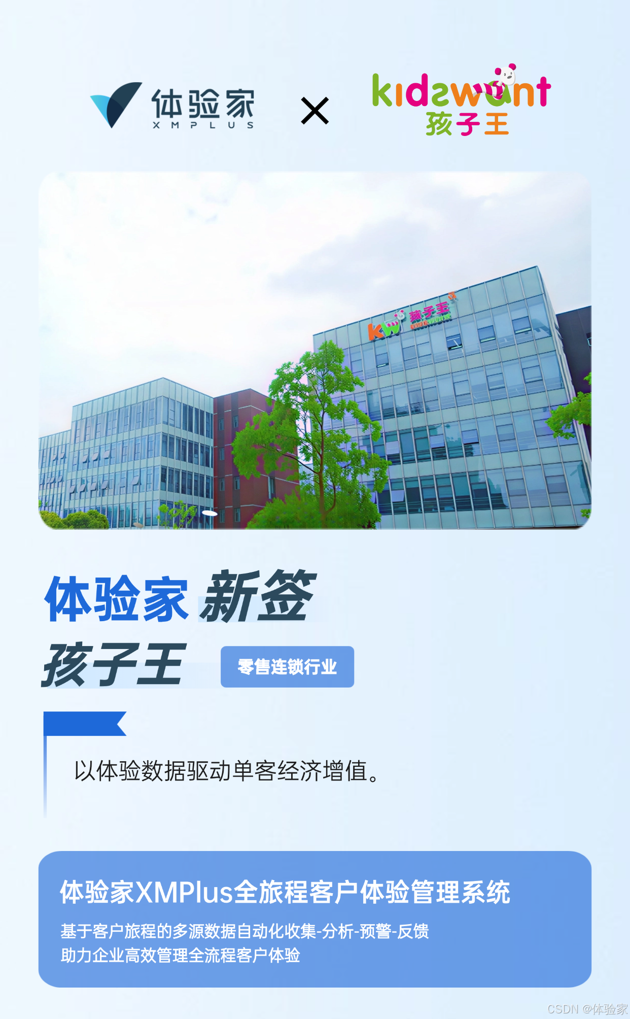 近日,孩子王儿童用品股份有限公司(以下简称“孩子王”)旗下专注于信息技术服务的全资子公司——上海童渠信息技术有限公司正式携手体验家,通过对海量客户体验数据的实时洞察与闭环管理,深度挖掘单个客户的全生命周期价值,持续巩固孩子王在亲子家庭服务市场的核心竞争优势。