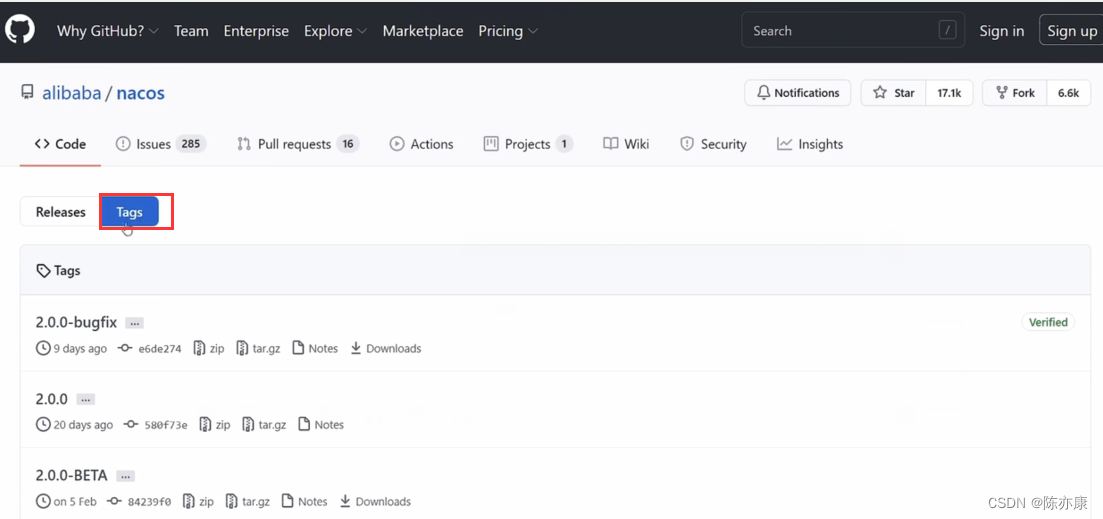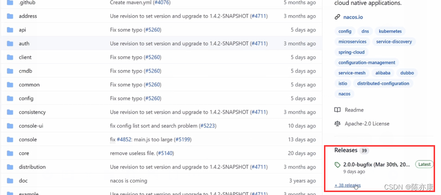 下滑就可以看到 nacos 的一个发行历代版本,如下: