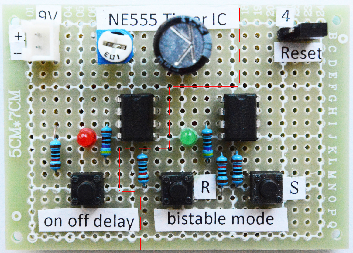 - 可调性:透过修改电容和电阻参数,可以灵活调整响应时间和工作状态,这是一般自锁开关难以达到的。(参见: NE555 延时开关电路 (单稳态电路))