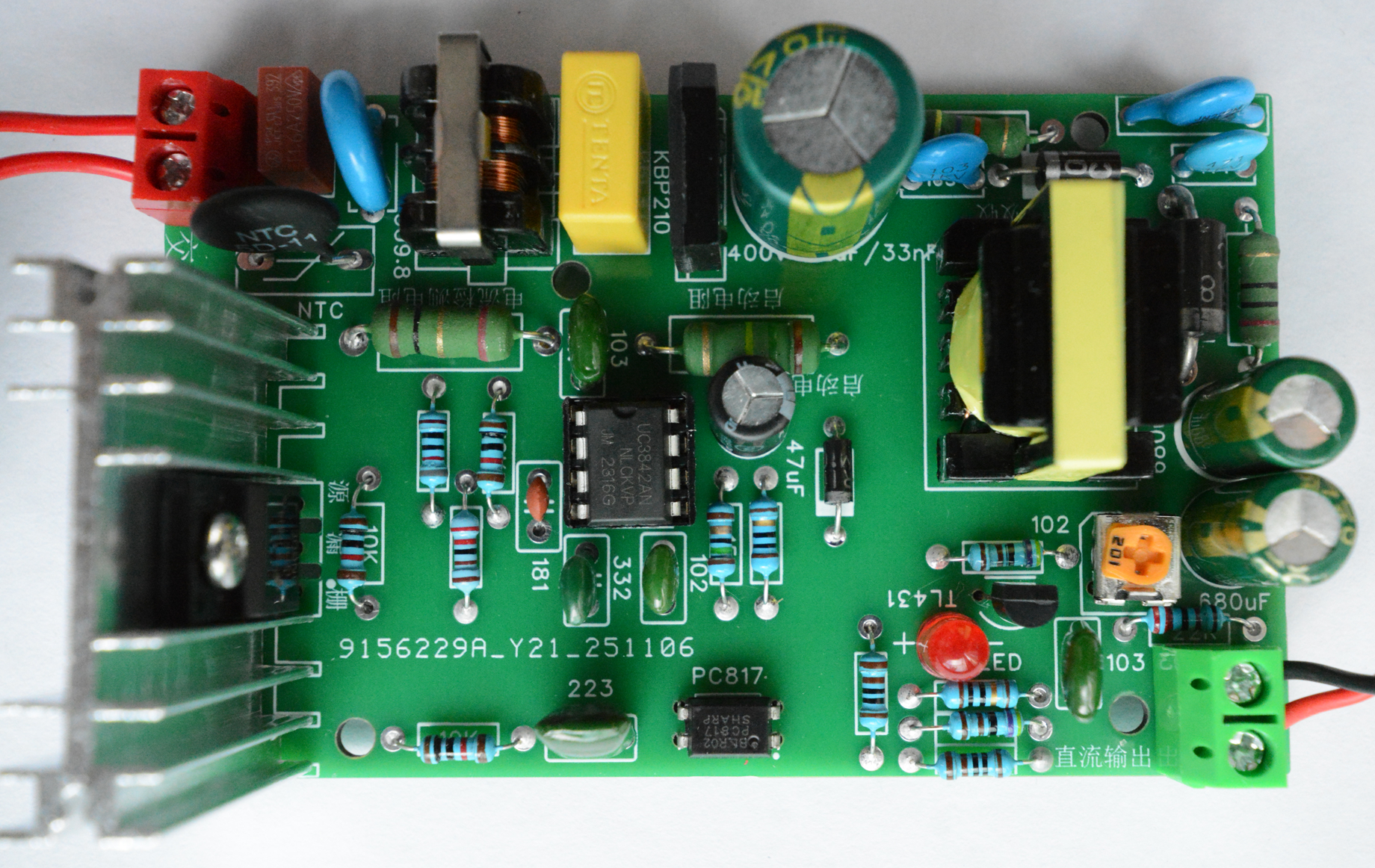 滤波电容容量:增大滤波电容容量有助于降低输出电压的纹波,提供更稳定的电源, 改用 120uF, 450V 滤波电容。