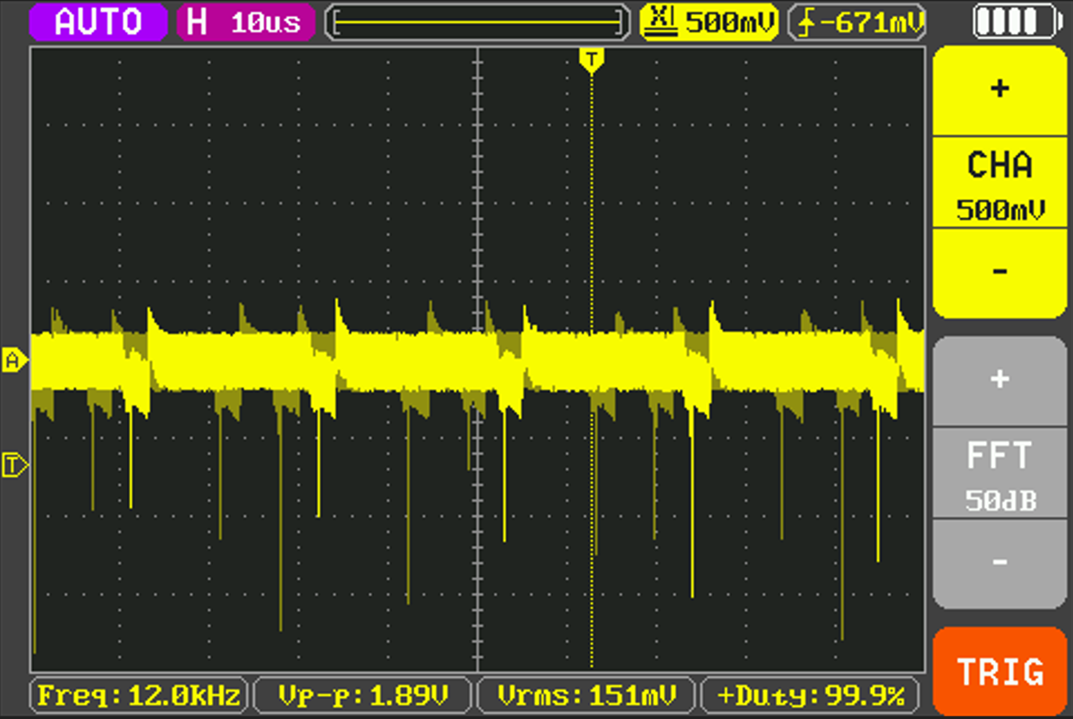 图7:第3脚 (电流取样输入) 波形, 电压高于1V,第6脚停止输出PWM方波