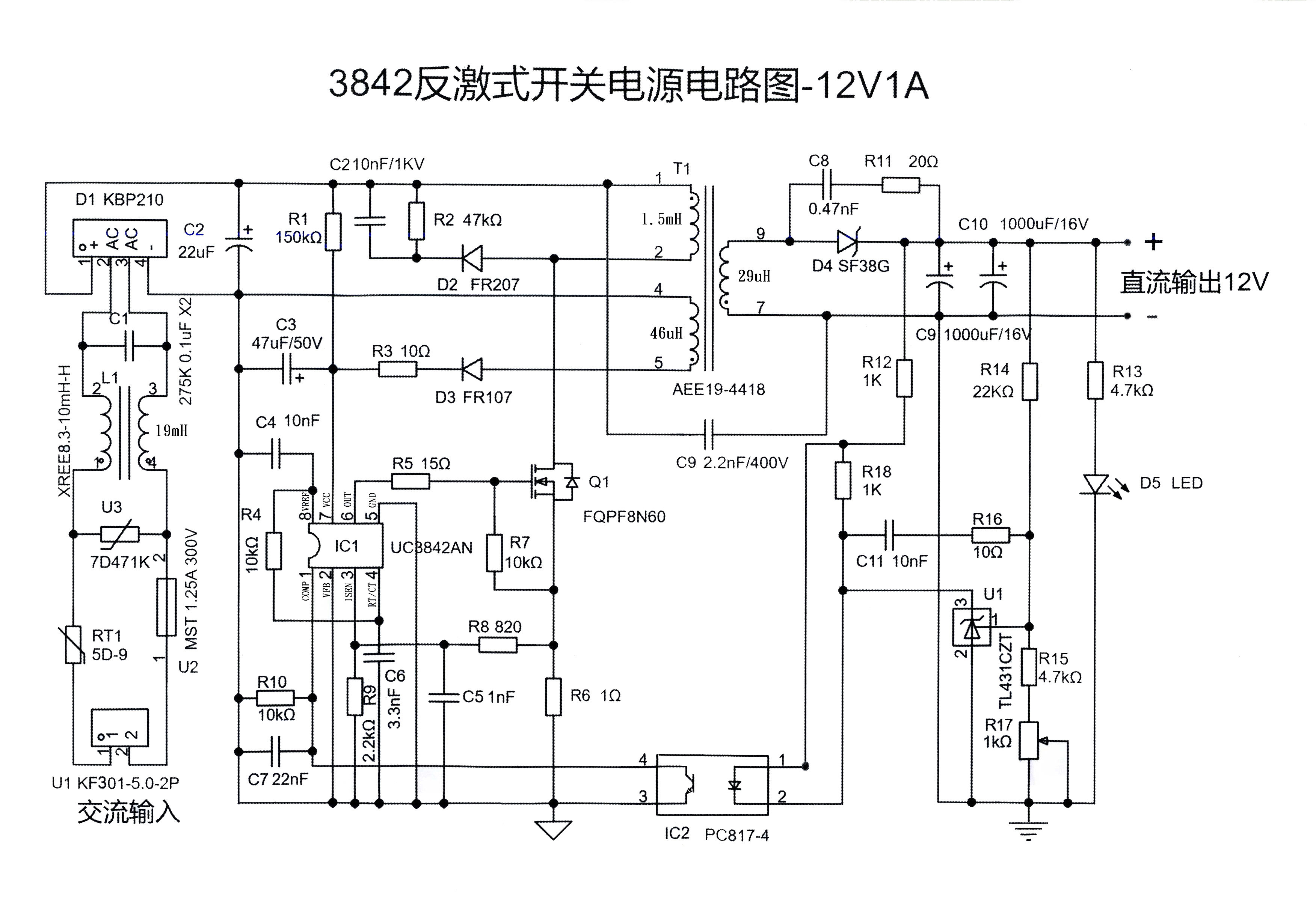 本文以反激式开关电源的设计为例子,说明UC3842的工作原理。