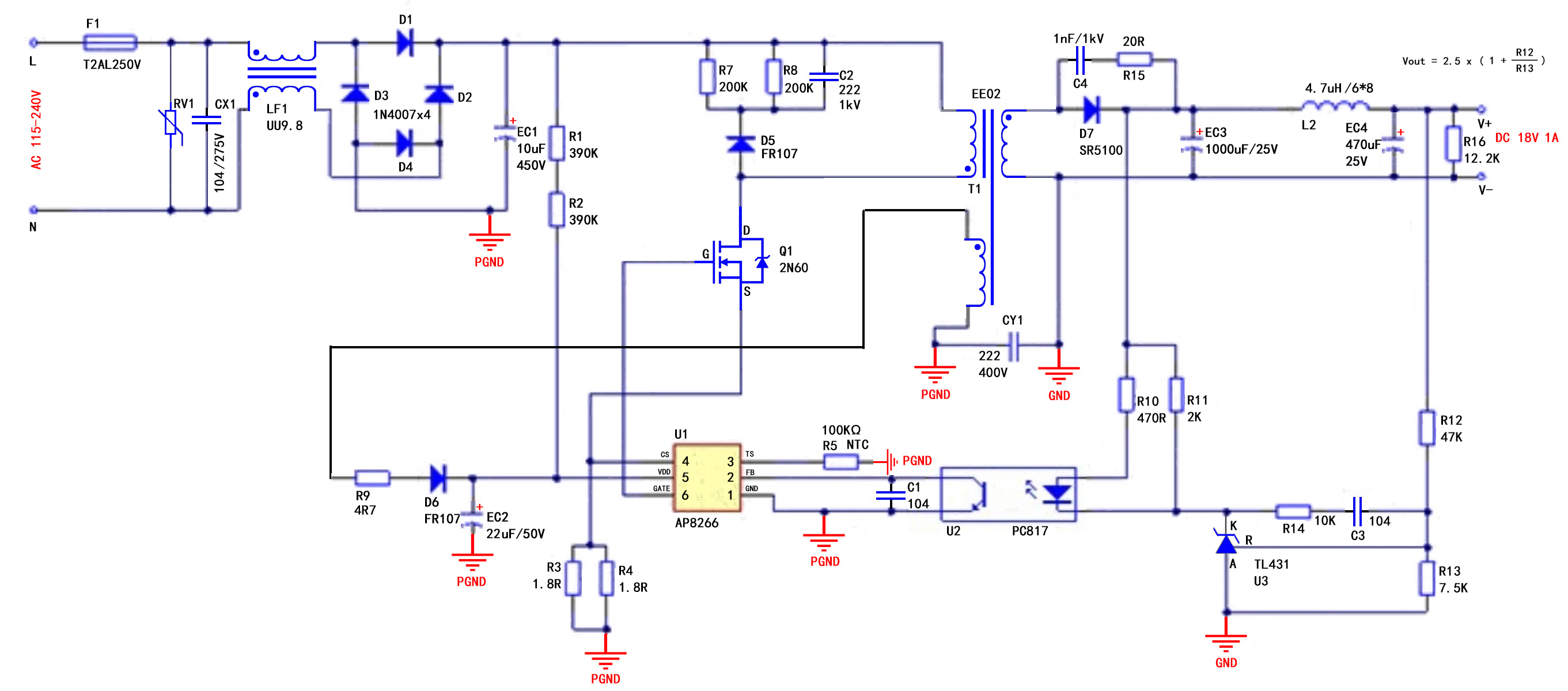 - AP8266的输出级采用的是图腾柱结构,用于驱动外部MOSFET的栅极。死区时间防止了电源到地的直接通路,既降低了功耗,同时又保证了高压驱动管不被烧坏。