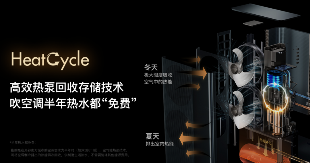 2. 创新的场景化节能方案:HeatCycle热回收技术创造了“空调+免费热水”的独特价值,跳出了传统能效比的内卷,为用户提供了更具吸引力的节能故事。