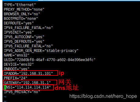 编辑/etc/sysconfig/network-scripts/目录下的ifcfg-ens32文件