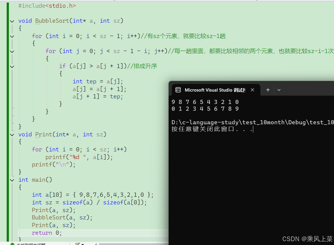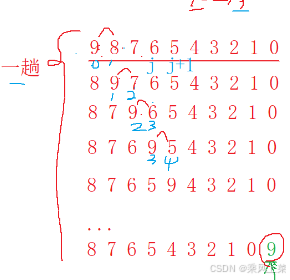 for (int j = 0; j < sz - 1 - i; j++)//每一趟里面,都要比较相邻的两个元素,