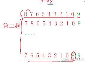 for (int j = 0; j < sz - 1 - i; j++)//每一趟里面,都要比较相邻的两个元素,也就要比较sz-i-1次