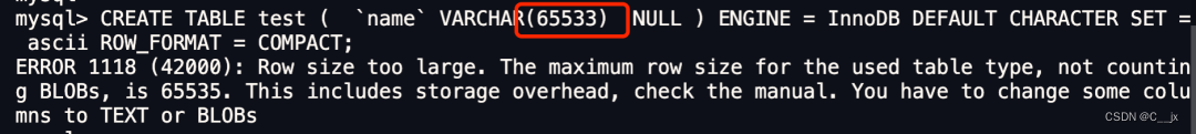 可以看到,还是不行,接下来看看 varchar(65532) 是否可行?