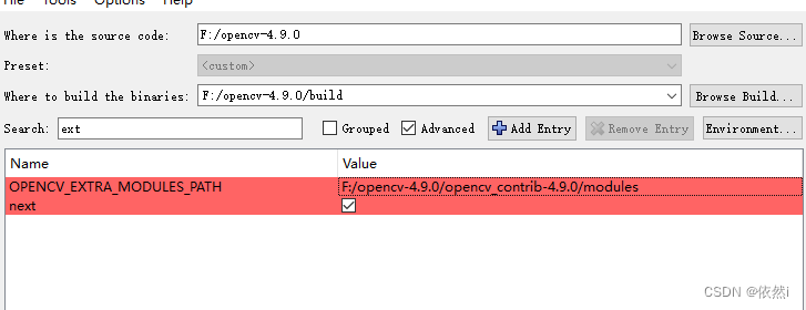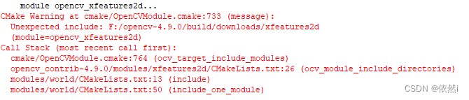 在opencv目录下,构建cmake时会生成一个.cache文件夹,如果cmake中报红,就去看这里面的文件夹, ffmpeg ippicv wechat xfeaturesd这几个的东西如果是0Kb,就需要自己去手动下载放进去,名字要改的和里面的一样。
