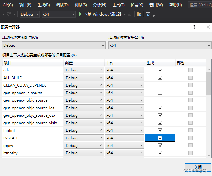 点击两次,一个生成ALL_BUILD,一次生成INSTALL