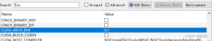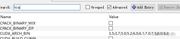 上一次configure完,CUDA_ARCH_BIN 这块应该是这样的,最好直接去查询下自己显卡对应的算力,不改应该也成