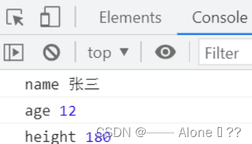 注意:遍历对象时,输出对象中的值,必须使用对象[代表键的变量]这种形式来输出。