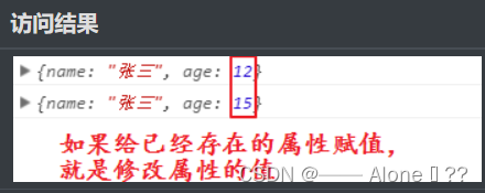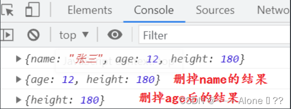 从输出的结果中能看到,书写顺序和显示的顺序是不同的,因为对象中的键值对是没有顺序的。